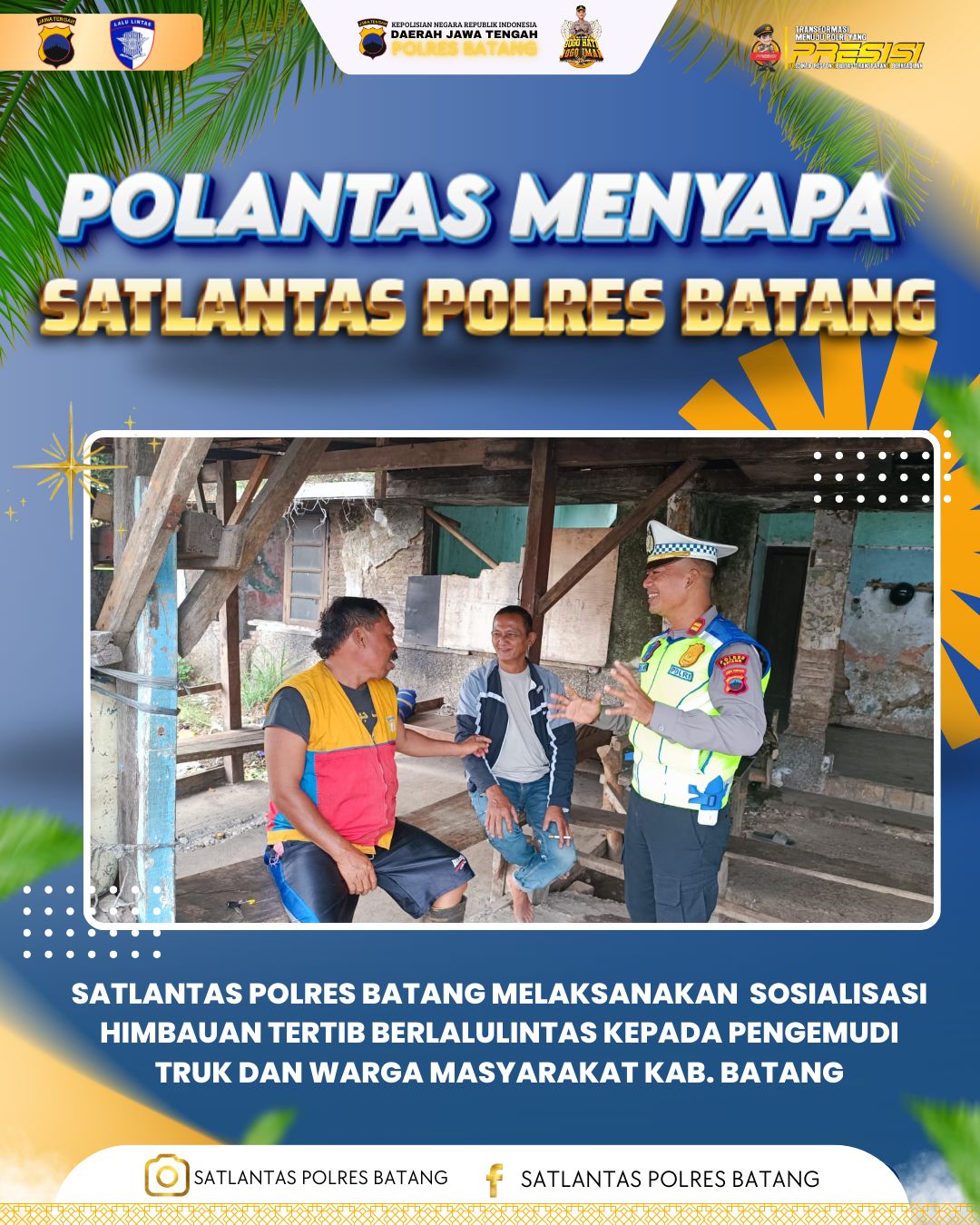 Batang — Upaya menciptakan budaya tertib berkendara terus dilakukan Satlantas Polres Batang melalui kegiatan sosialisasi langsung di tengah masyarakat. Kali…