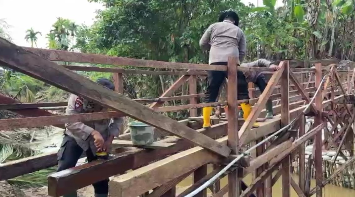 Sat Brimob Polda Sumbar Bangun Jembatan Darurat Penghubung Dua Nagari di Padang Pariaman