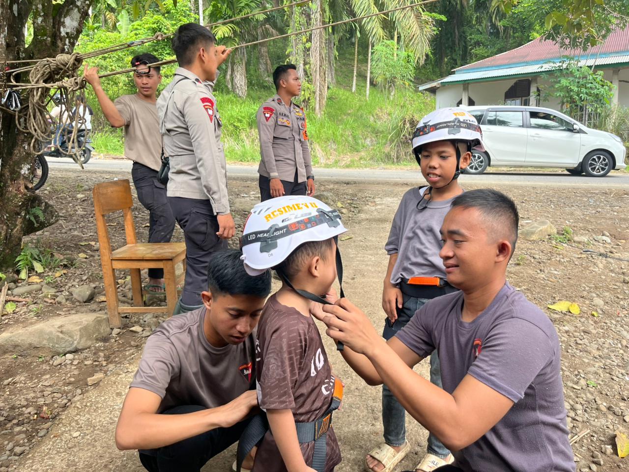 Trauma Healing Polri Hadirkan Flying Fox untuk Kembalikan Senyum Anak-Anak Terdampak Bencana di Kayu Pasak