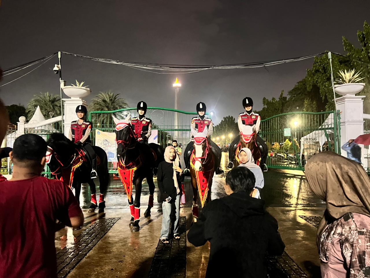 Jakarta — Kehadiran satuan Polisi Satwa (Polsatwa) berkuda Polri menarik perhatian masyarakat yang memadati kawasan Monumen Nasional (Monas) pada malam…
