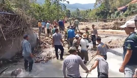 Tak Kenal Hari Libur, Polri Bersama Warga Bangun Jembatan Darurat Pascabencana di Aceh Tengah