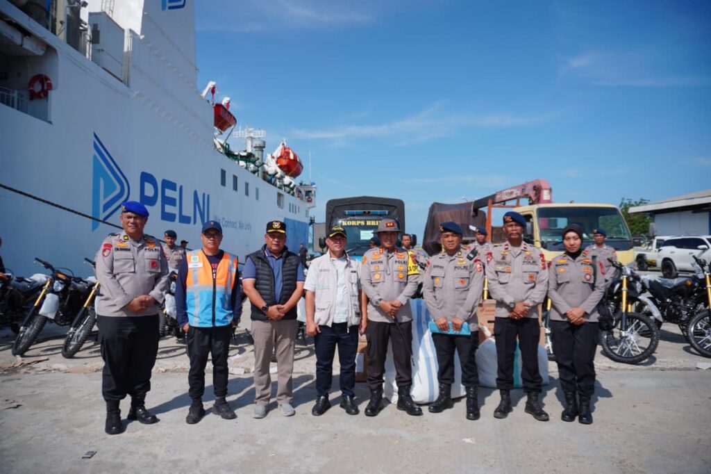 Lhokseumawe — Kapal MV Egon milik PT Pelayaran Nasional Indonesia (Pelni) yang mengangkut personel dan bantuan logistik Polri tiba dan sandar di Pelabuhan Krueng Geukueh, Desa Tambon Baroh, Kecamatan Dewantara, Kabupaten Aceh Utara, Minggu (21/12/2025) sekitar pukul 09.37 WIB. Kedatangan kapal ini merupakan bagian dari misi kemanusiaan Polri untuk memastikan bantuan segera diketahui dan dimanfaatkan masyarakat terdampak bencana di Aceh dan sekitarnya.