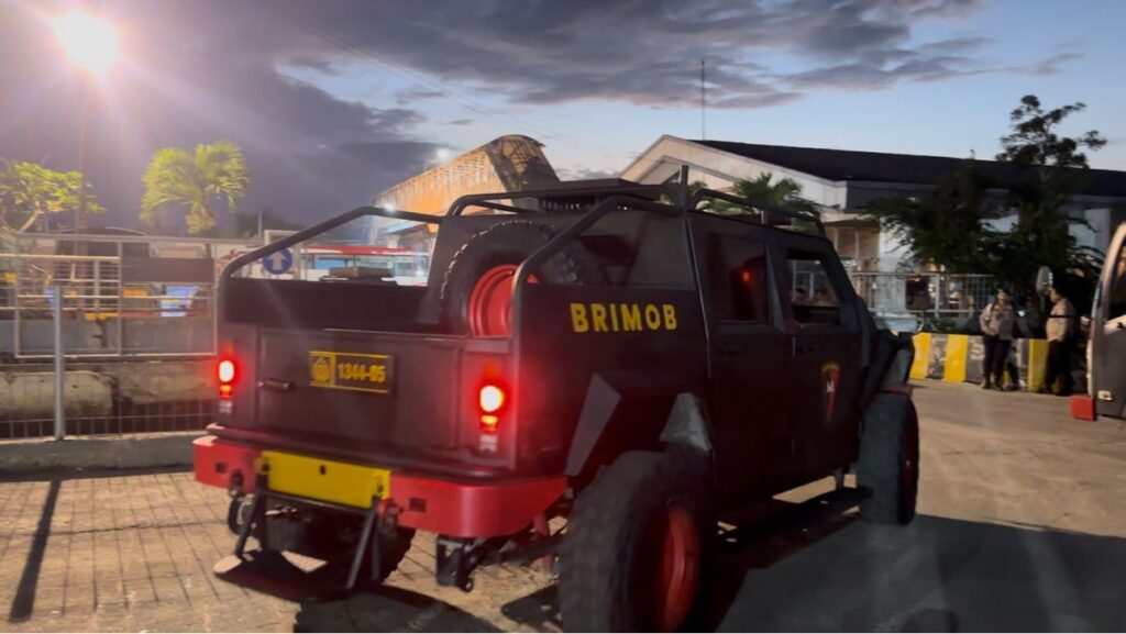 Dalam proses tersebut, satu unit truk dinas Korbrimob Polri digunakan untuk membongkar muatan bantuan logistik, kemudian kembali ke kapal untuk melanjutkan pengangkutan logistik dan personel ke wilayah tujuan berikutnya.